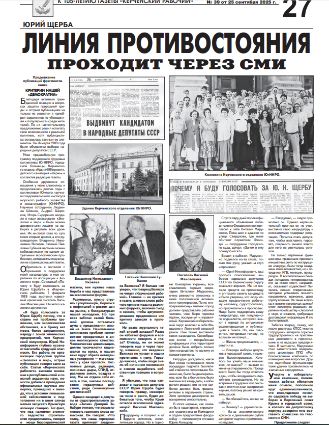 Главный редактор газеты "Керченский рабочий" Щерба Юрий Никифорович