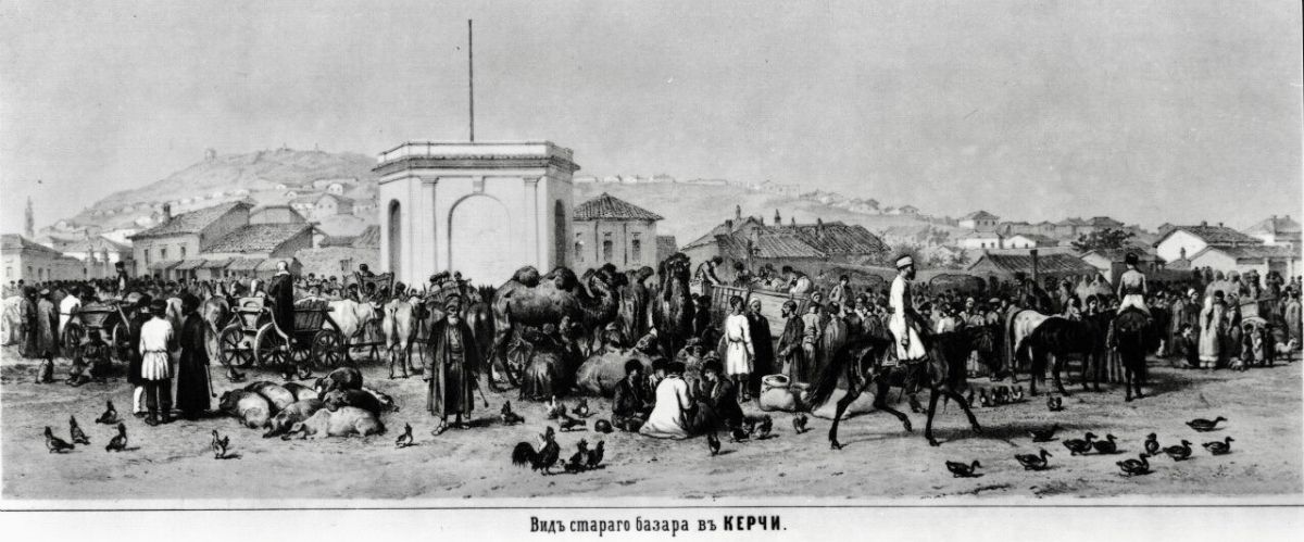 Напротив храма, через дорогу от него, стояло великолепное здание Керченской таможни, уничтоженное уже в конце XX века бездумными советскими чиновниками. Рядом с церковью, выходя фасадом на ул. Энгельса (так прежде называлась часть нынешней улицы Кирова), на месте нынешнего универмага, находился Керченский пассаж, крохотный, местный, имитирующий Петровский пассаж Санкт-Петербурга. Ближе к морю располагался Новый или Красный рынок. Здесь были лабазы и ряды столов, с наваленной на них рыбой разных сортов и размеров. Огромные осетры, белуга, севрюга, черноморская и азовская камбала, рыбец, тарань, чехонь, множественные разновидности керченской сельди (пузанок, точек, куцак...) я уже не говорю о частиковой рыбе пресных водоемов и хамсе. Копченая рыба продавалась только золотистого цвета, настоящего, рыбацкого посола. Я могу смело уверять, что так коптить рыбу сейчас не умеют,- технология не та...