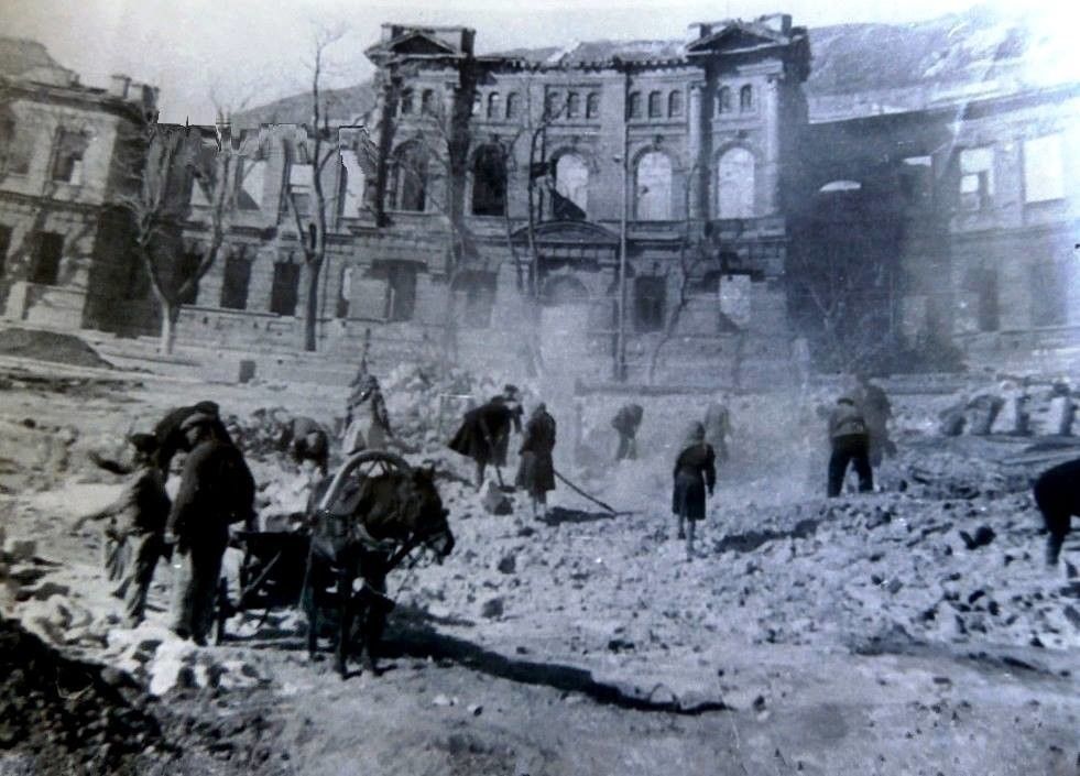 Сквер Мира создавала вся Керчь. Сюда по вечерам, после трудового дня приходили судостроители и рыбаки, металлурги и учителя. Разбирали завалы, оставшиеся от целого квартала жилых зданий, метр за метром расчищали площадь. Вывезли тысячи кубометров камня и мусора. На расчищенное место привезли свежую землю, поселили на ней деревья и цветы. Так стал существовать сквер, а вместе с ним возникла и привязанность к тому, что создано собственными руками. Больше трех миллионов часов напряженного труда вложили керчане в восстановление своего города только в первые три послевоенных года.