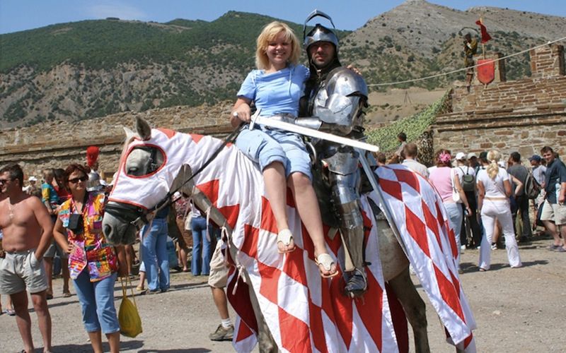 Над древними стенами развиваются флаги и штандарты рыцарских орденов, негромко бряцает оружие, тихо скрипят кожаные ремни, стянувшие доспехи, по старинным мостовым цокают конские копыта и где-то рядом размеренно ударяет кузнечный молот, тихо шуршит под ногой у средневекового мастера гончарный круг. Как и много веков назад, с рассветом крепость оглашается криками торговцев, распахиваются крепостные ворота и городская стража пропускает всех желающих в средневековую Сугдею…так открывается международный рыцарский фестиваль «Генуэзский шлем». Мы с вами едем на открытие!