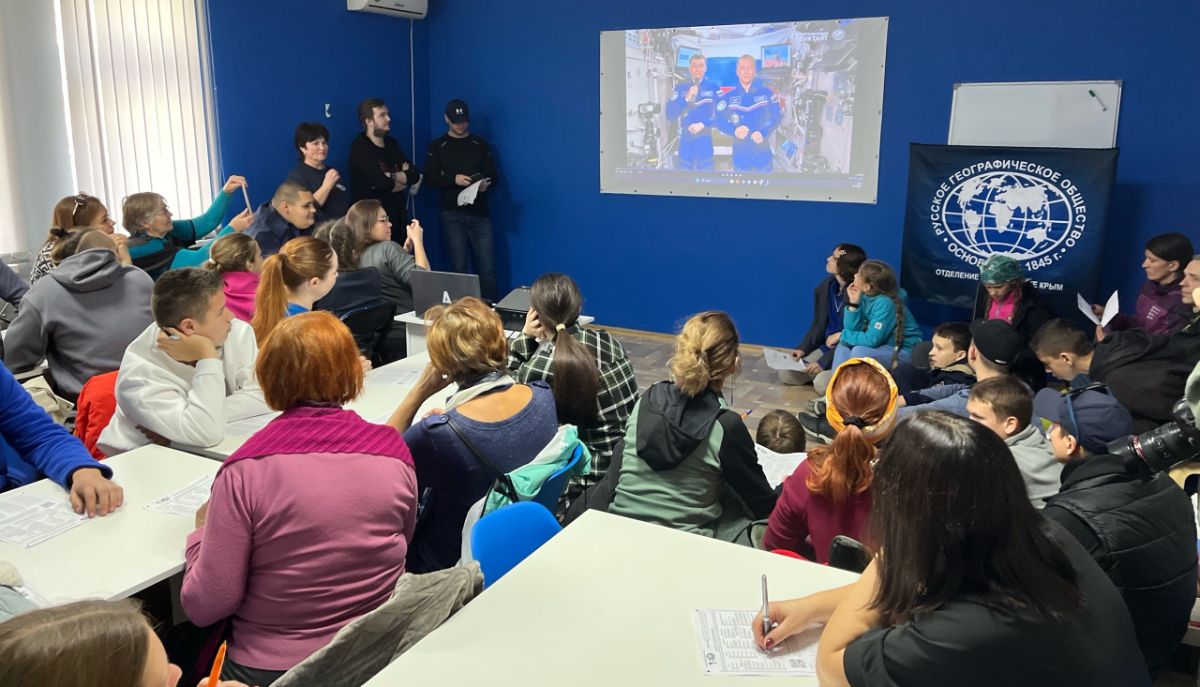 В керченском местном отделении Русского географического общества стартовал ежегодный географический диктант. Желающих столько, что часть из них разместилась на полу, лишь бы иметь возможность участвовать в мероприятии.